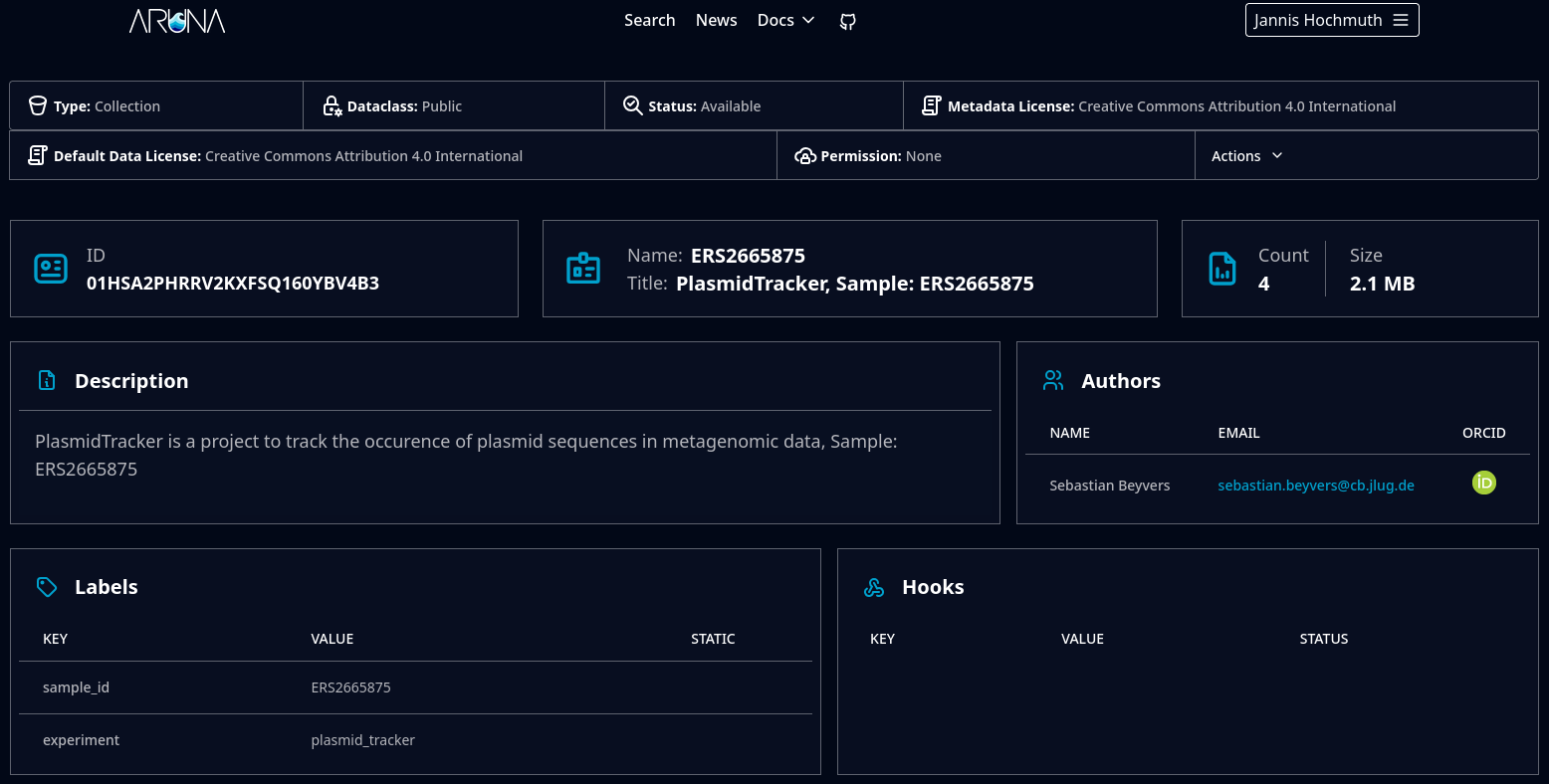 Files can be uploaded independently of metadata creation via an s3 interface. Data can be located at nodes by its content hash, or by its s3 path. While s3 paths can change, content hashes cannot, allowing for pinning specific data versions via content hashes, while still allowing for flexiblity of paths via the s3 interface. Data can be stored in different data-backends, allowing for flexible deployment of nodes in vastly different environments. Not only newly created data can be stored on nodes, but also existing data on supported backends can be ingested to a node, allowing for data reuse and integration of existing data sources into aruna. Data can be replicated to other nodes via replication policies. Disclaimer: Filters in replication policies are currently ignored. If a complete bucket gets replicated, the associated paths and permissions are also replicated. If only some objects are replicated, they are only replicated by content hash, without their s3 paths. This means, that data can be accessed at any node by its content hashes, but only on some nodes by its s3 paths. Uploaded data can be linked to metadata objects, including their technical metadata. This allows for workflows to first create all neccessary data and load it into aruna, and then select only the neccessary data to be linked in one or more metadata objects.